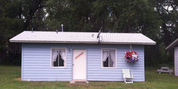 Cabin Eight is one of our three bungalow-style cabins. Bungalows are furnished with two full-sized beds, along with full kitchens and bathrooms, and accommodate a suggested maximum of four (4) people. This one overlooks the stream that flows through our campground.